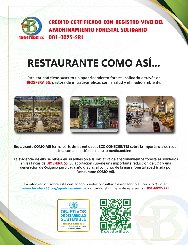 Las entidades que suscriben un apadrinamiento forestal solidario a través de BIOSFERA 55 manifiestan su voluntad de contribuir activamente a una conciencia ecológica compartida, integrando este compromiso en su identidad pública de forma responsable y transparente.